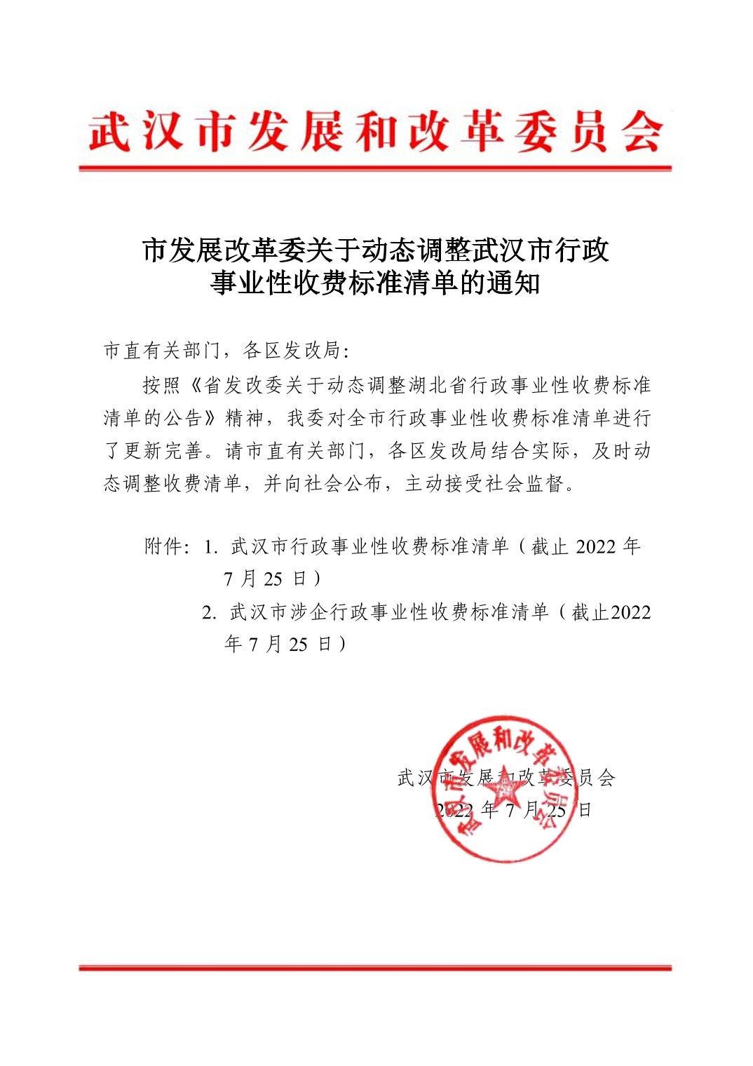 市发展改革委关于动态调整武汉市行政事业性收费标准清单的通知