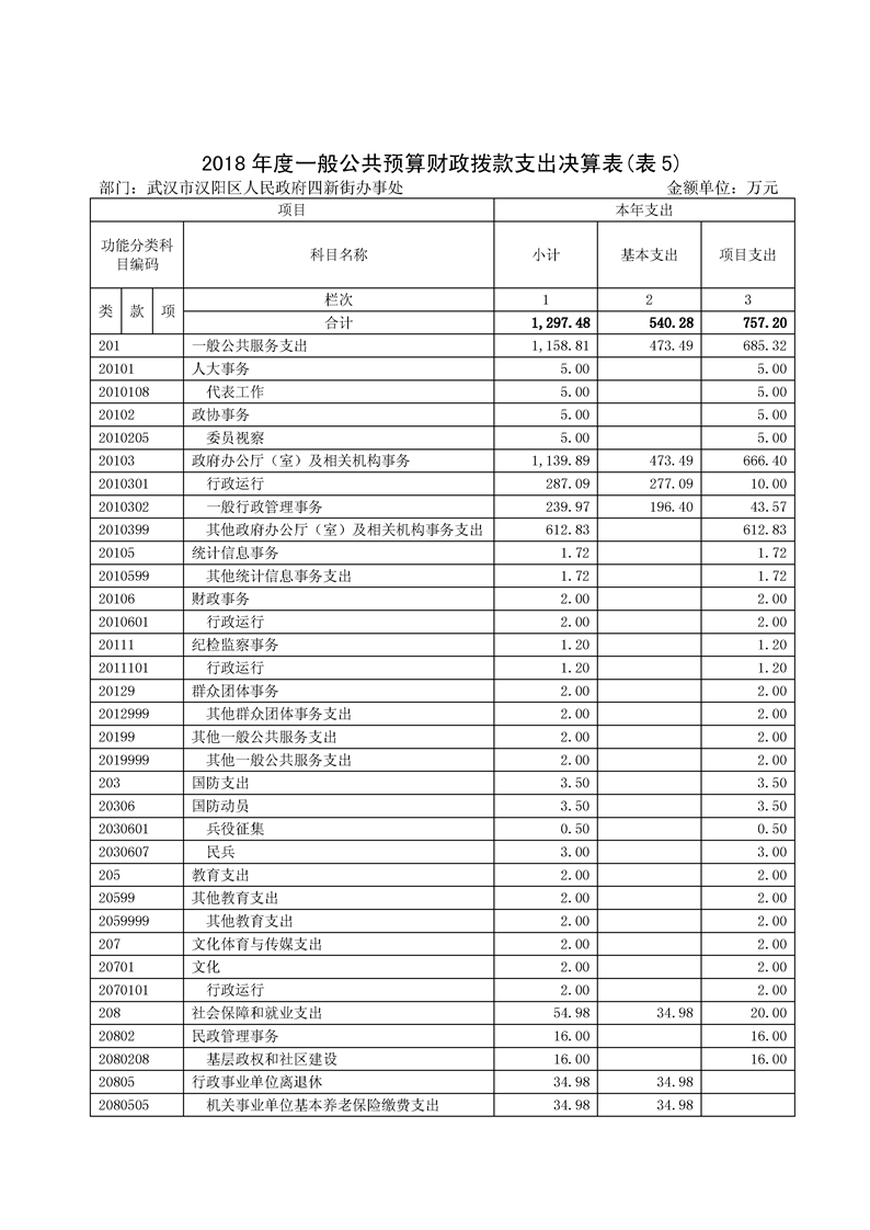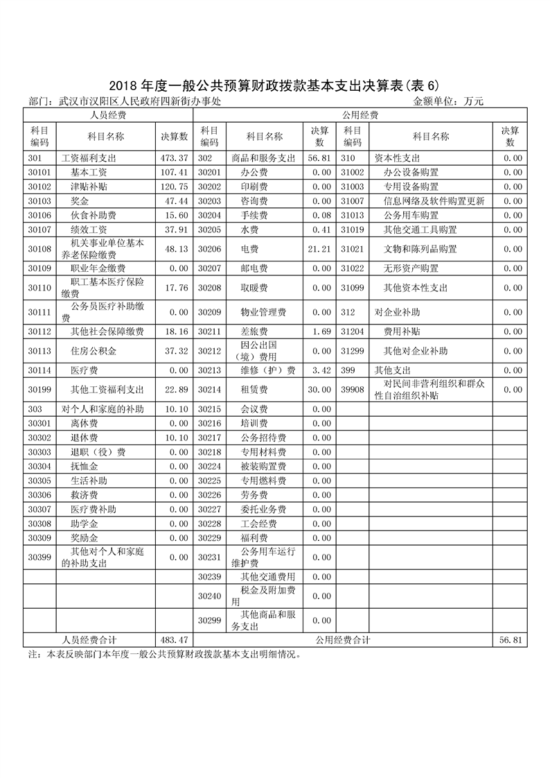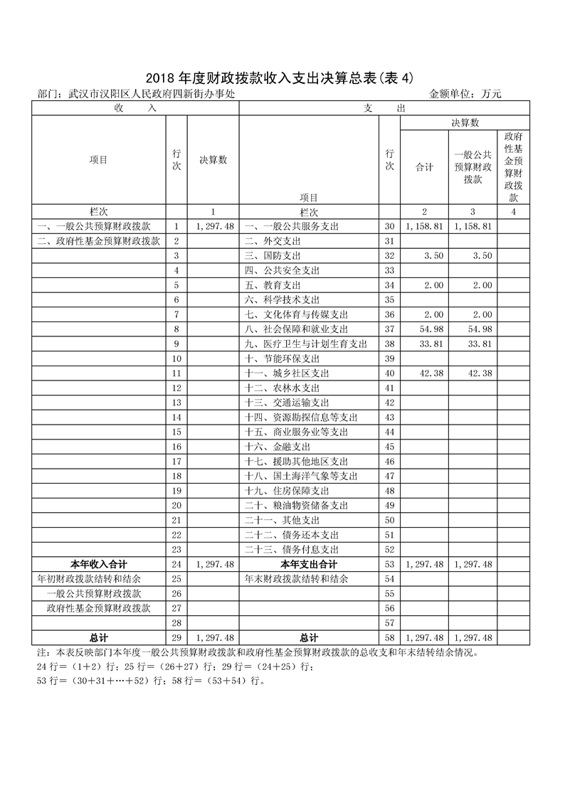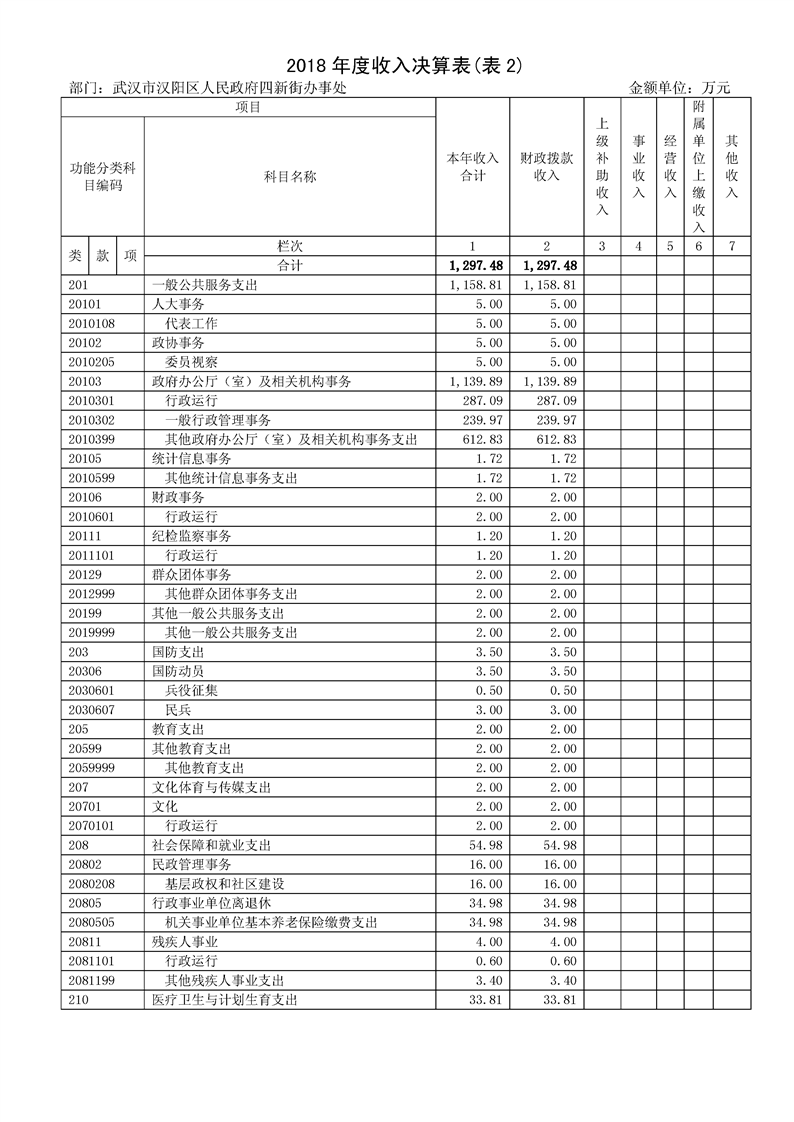2018年度汉阳麻豆在线 四新街部门决算公开
