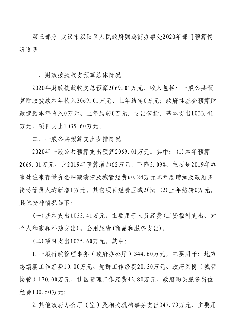 2020年度麻豆在线 鹦鹉街办事处部门预算