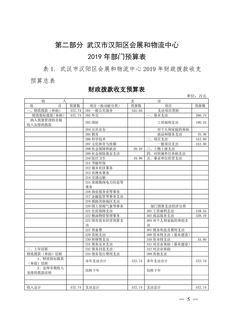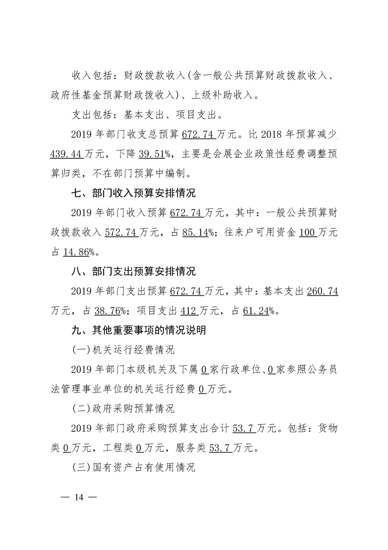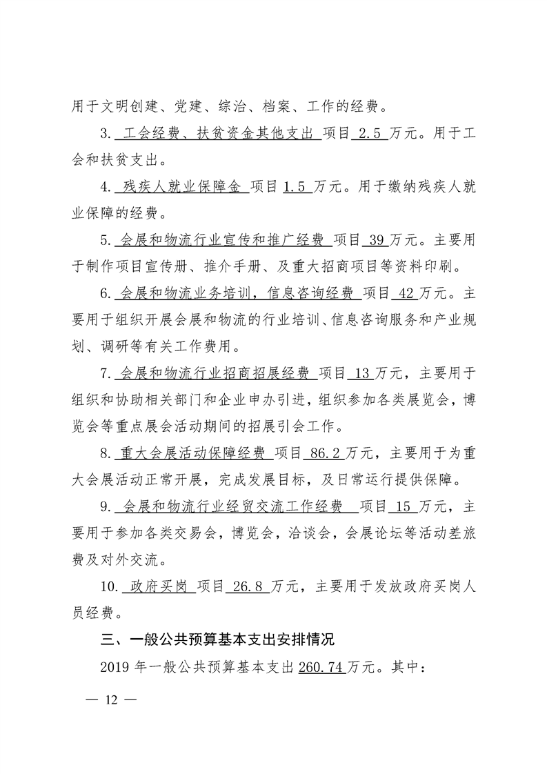 区会展和物流中心2019年部门预算公开